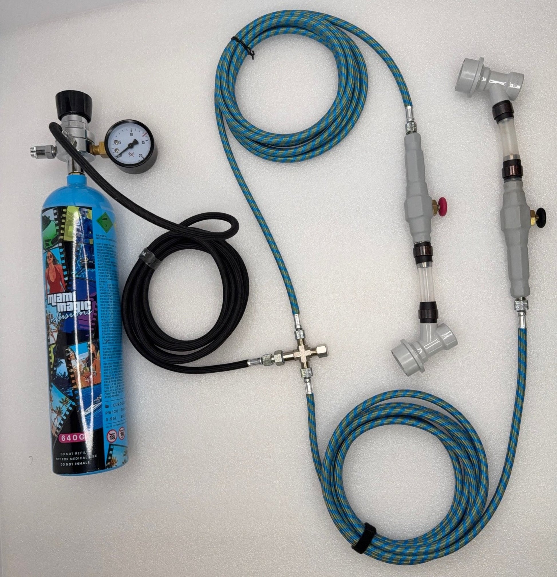This kit will allow you to run 2 N.O.D.S. handles from a single tank and regulator. The splitter has 3 outputs, allowing the addition of a third handle and hose kit (sold seperately).
